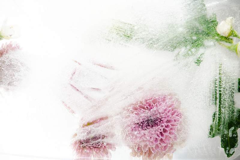 Белая роза во льду: фотографии