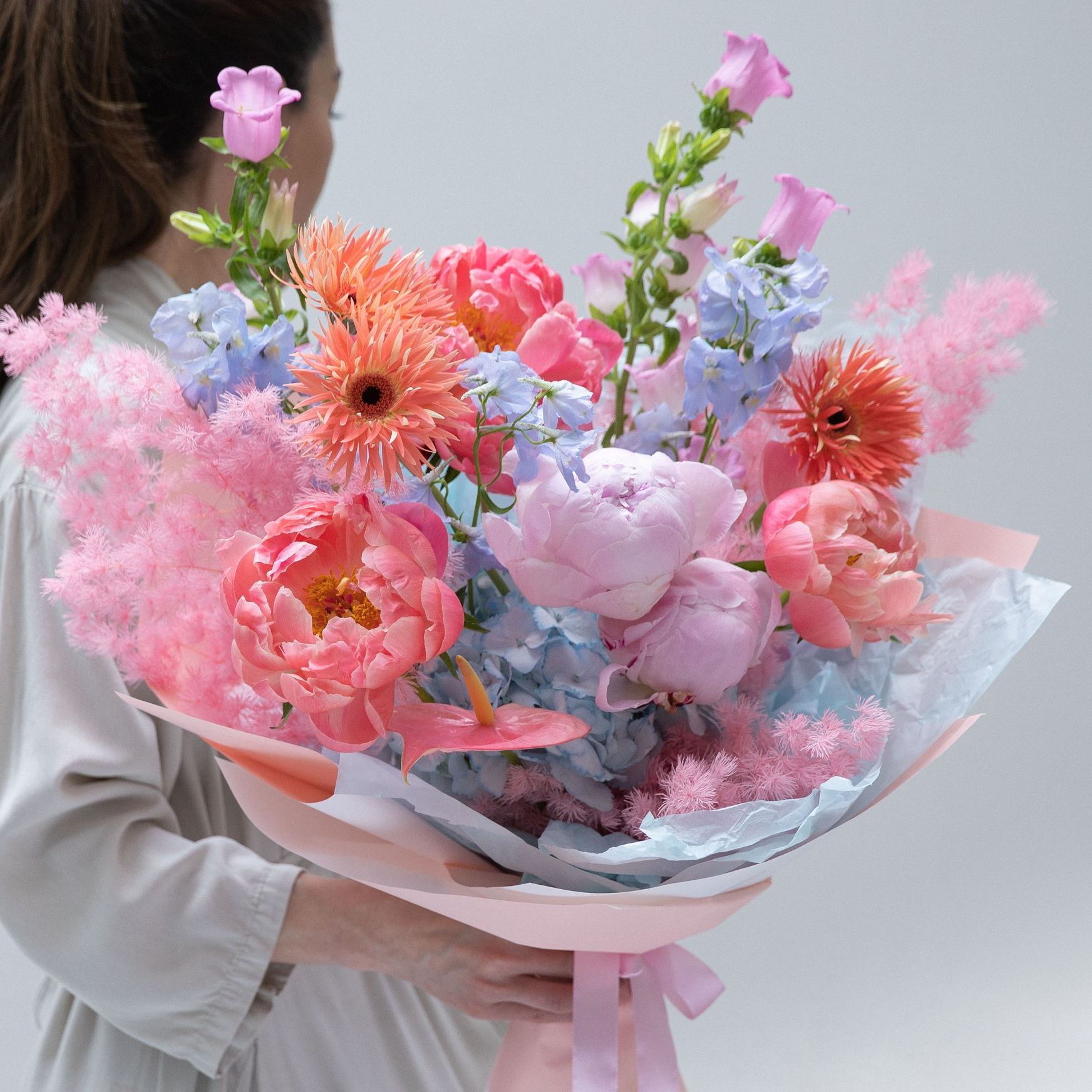 Эффектные букеты с гортензиями, пионами и дельфиниумами