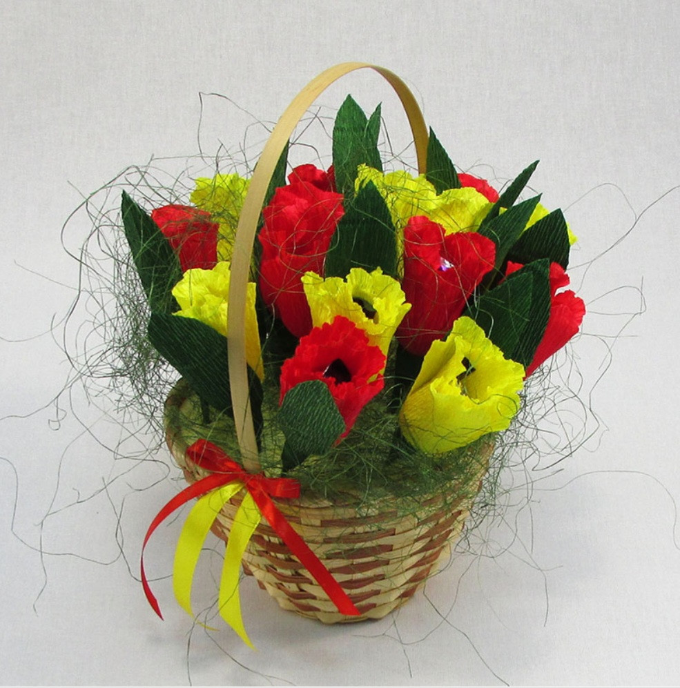 Корзинки с тюльпанами и сладостями