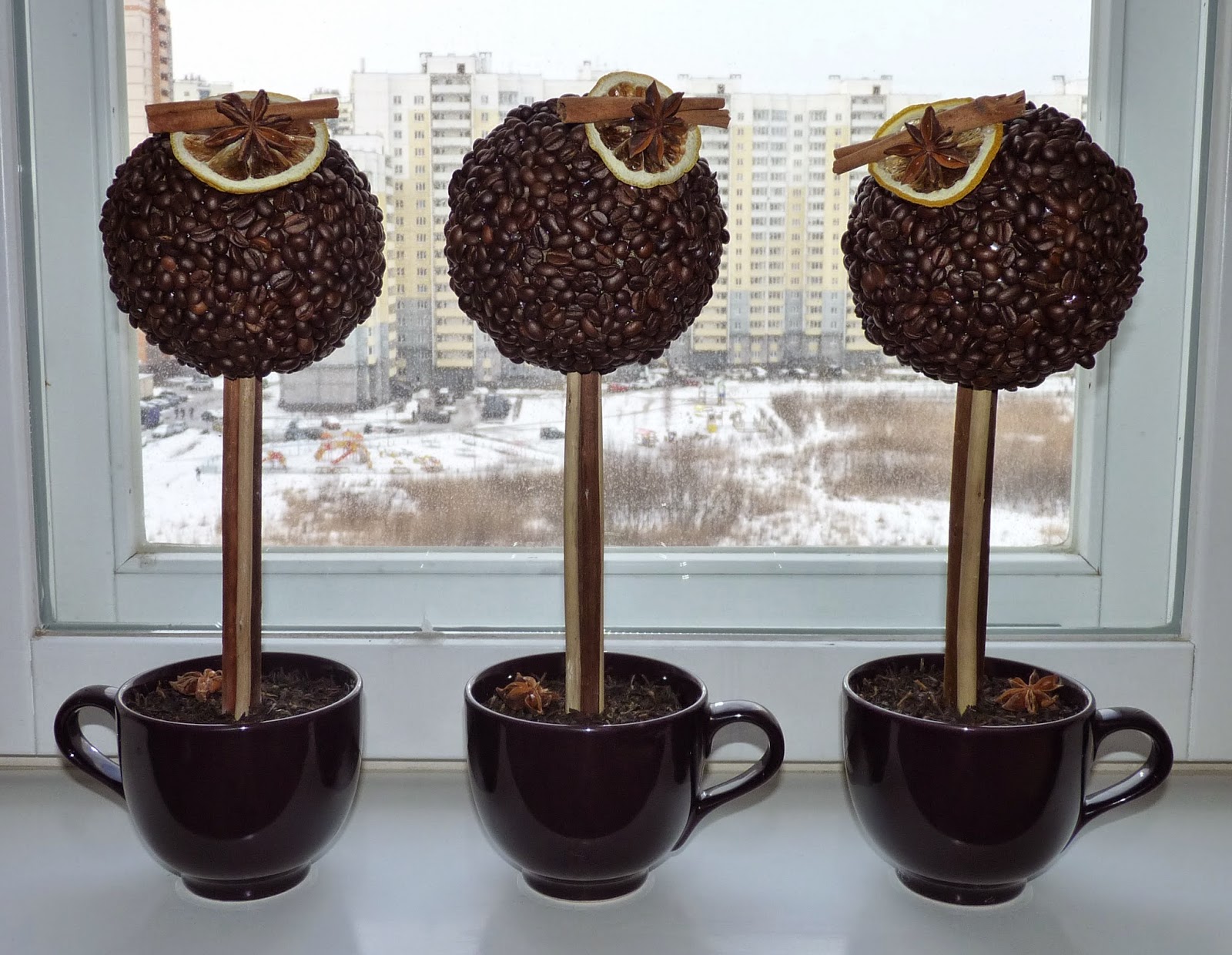Топиарии из кофе с кружевом: элегантные поделки