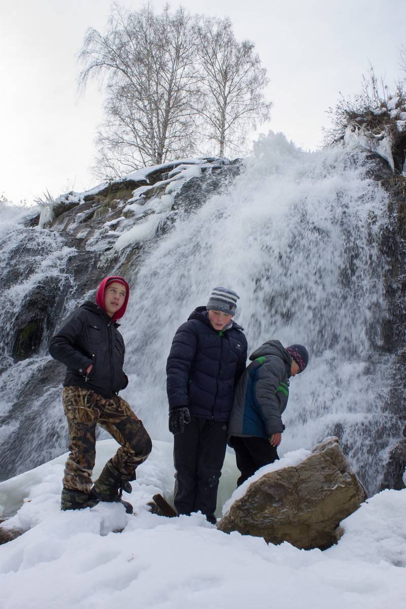 Зимние виды Пещерского водопада в Алтайском крае