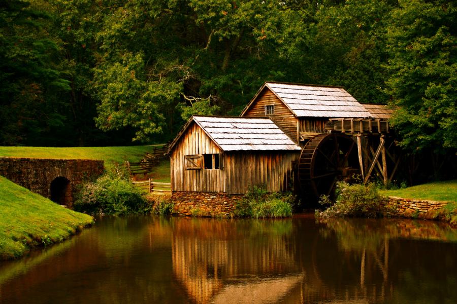 Водопад и водяная мельница у реки: идиллические фото